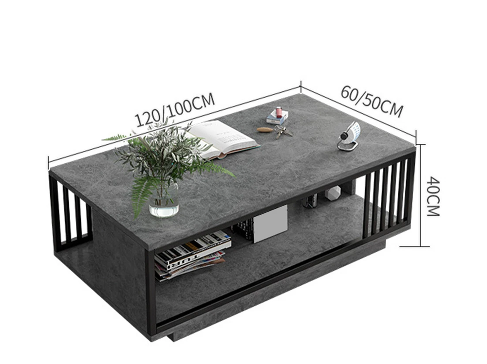 Coffee table 2 in 1 living room coffee tables – Grey Rectangle Center Table with Storage Shelf