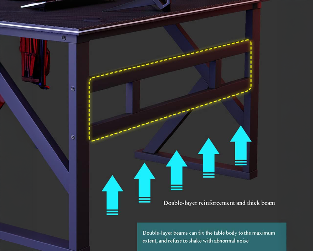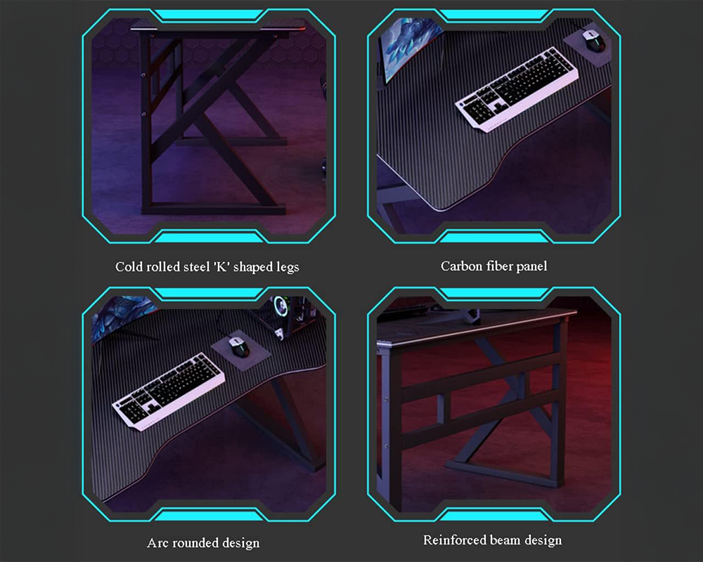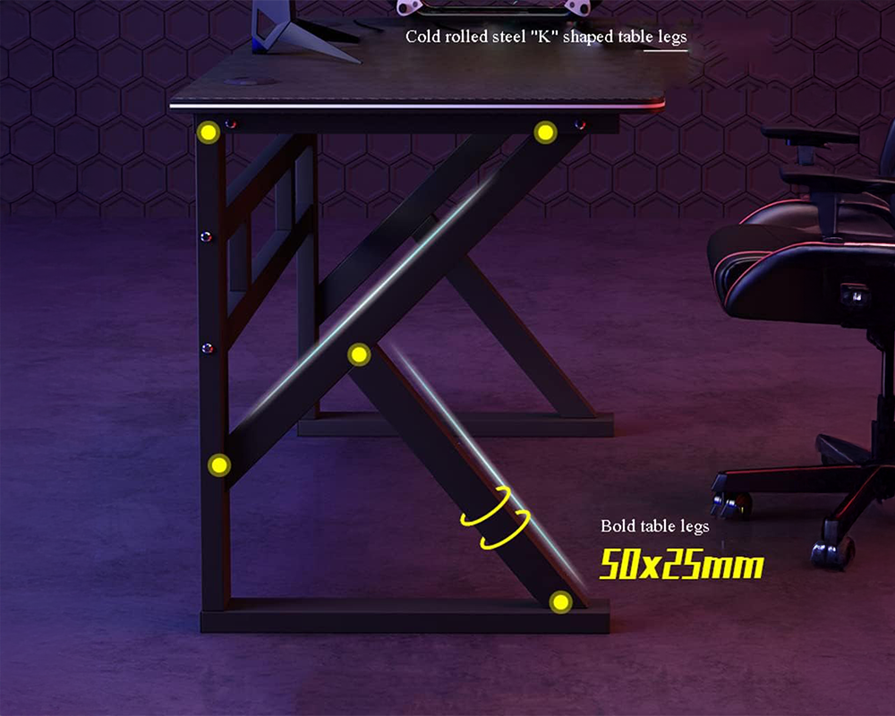 Enhance your gaming experience with this Gaming Computer Desk, designed for gamers who need ample space, durability, and style. Featuring a spacious 120cm carbon fiber surface, this ergonomic desk provides plenty of room for your monitors, gaming setup, and accessories. Its K-shaped design offers exceptional stability and is built to support even the most intense gaming sessions.