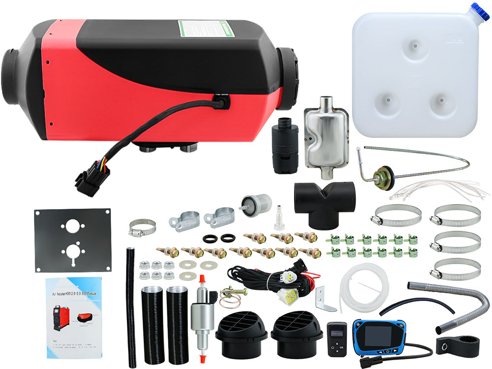 The Diesel Air Heater package includes all necessary mounting hardware, an LCD control panel, remote control, muffler, and a detailed instruction manual for hassle-free installation.Wide Vehicle Compatibility: