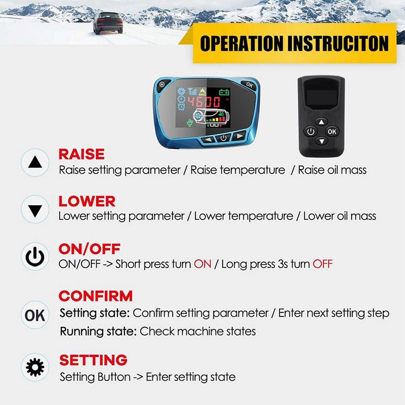 - Efficient Heat Source: The Diesel Air Heater provides a heat source for the car, increasing the temperature inside to prevent engine wear at low temperatures. It's convenient for defrosting the interior, starting the vehicle, and defrosting the car window Diesel Air Heater.