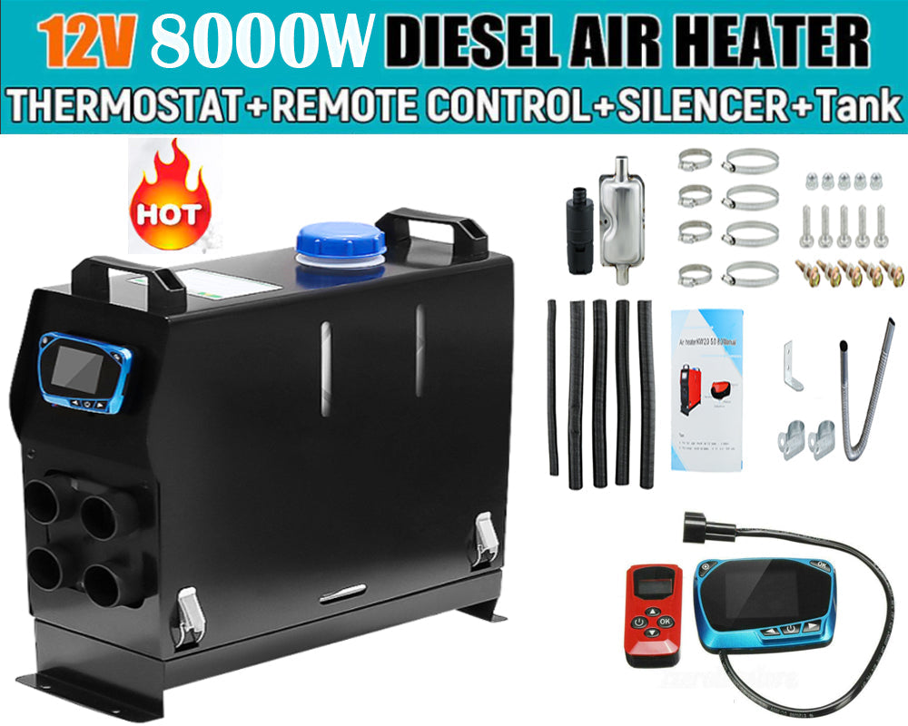 Car Heater 8KW 12V All in One Diesel Air Heater Thermostat LCD Remote Control Car Heater for Caravan Caravan RV Trailer