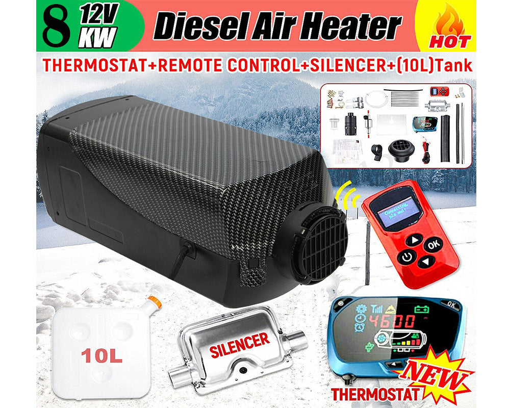 12V 8KW Diesel Air Heater for Car, Truck, Bus, Boat, and Trailer – LCD Remote Control + Monitor Switch + Muffler