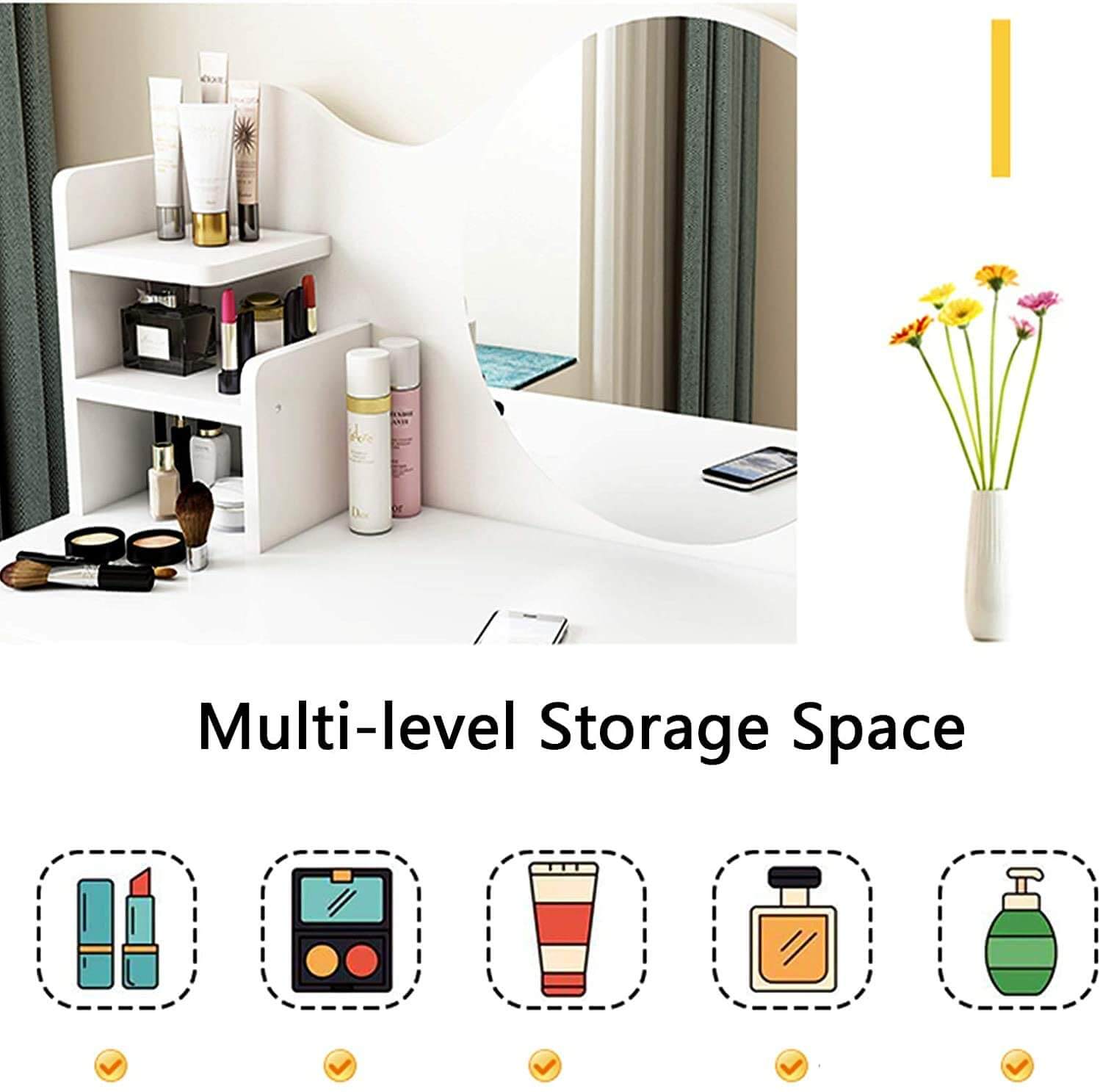 - Multi-Purpose Design: The foldable hinged mirror offers ample space for makeup and skincare routines, while the table Dressing doubles as a writing desk or office desk when the mirror is closed.