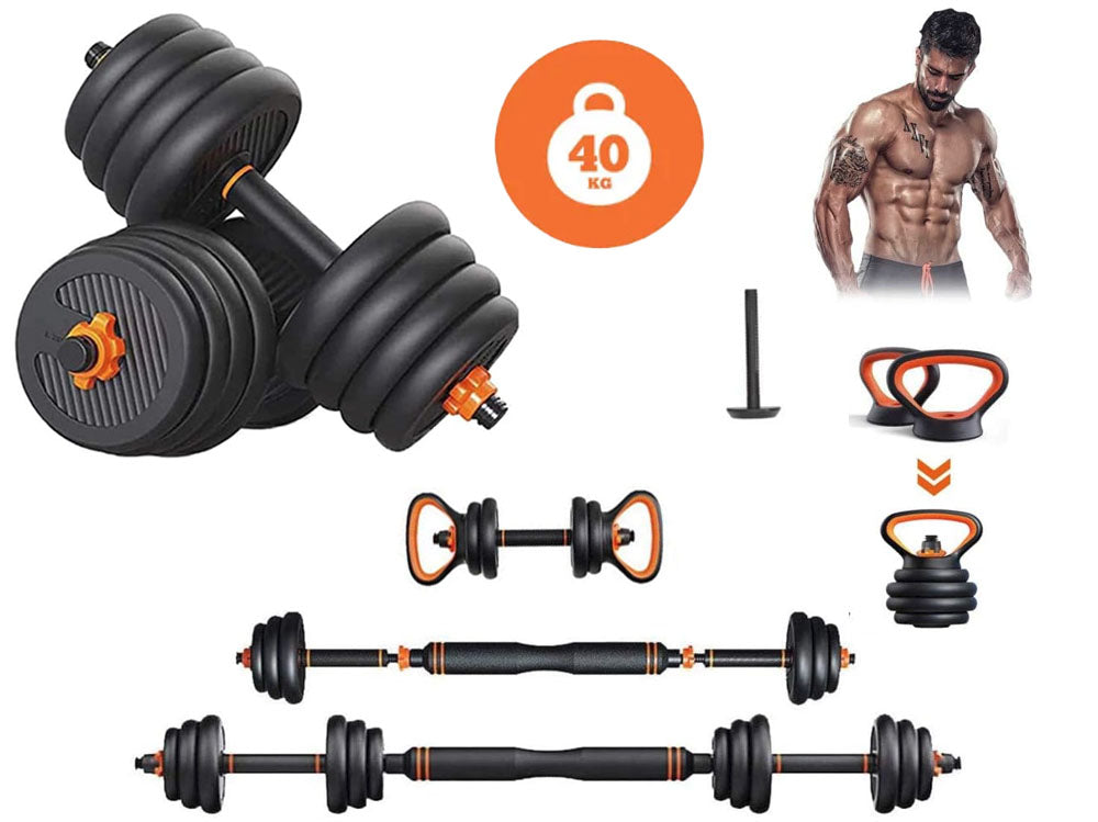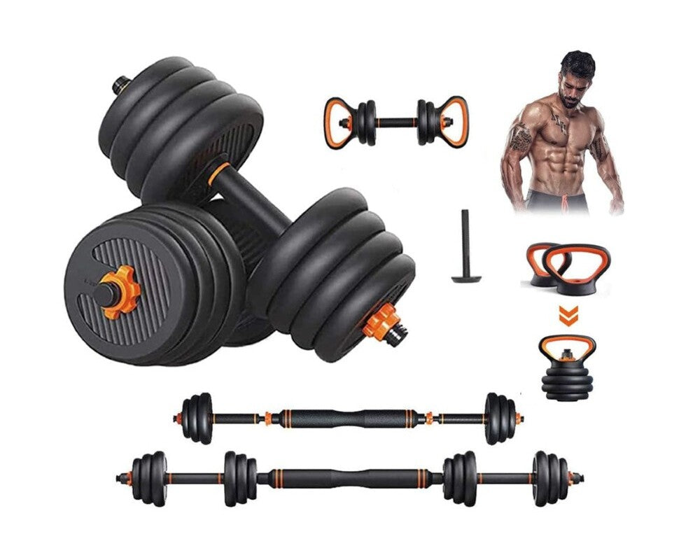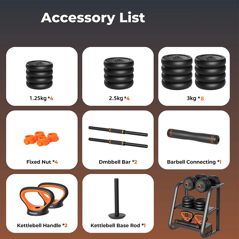 - 6-IN-1 FITNESS SET: Combines dumbbells, push-up bars, kettlebells, and a barbell in one set. Quickly switch between different training modes to enhance your workouts without the need for expensive gym memberships.