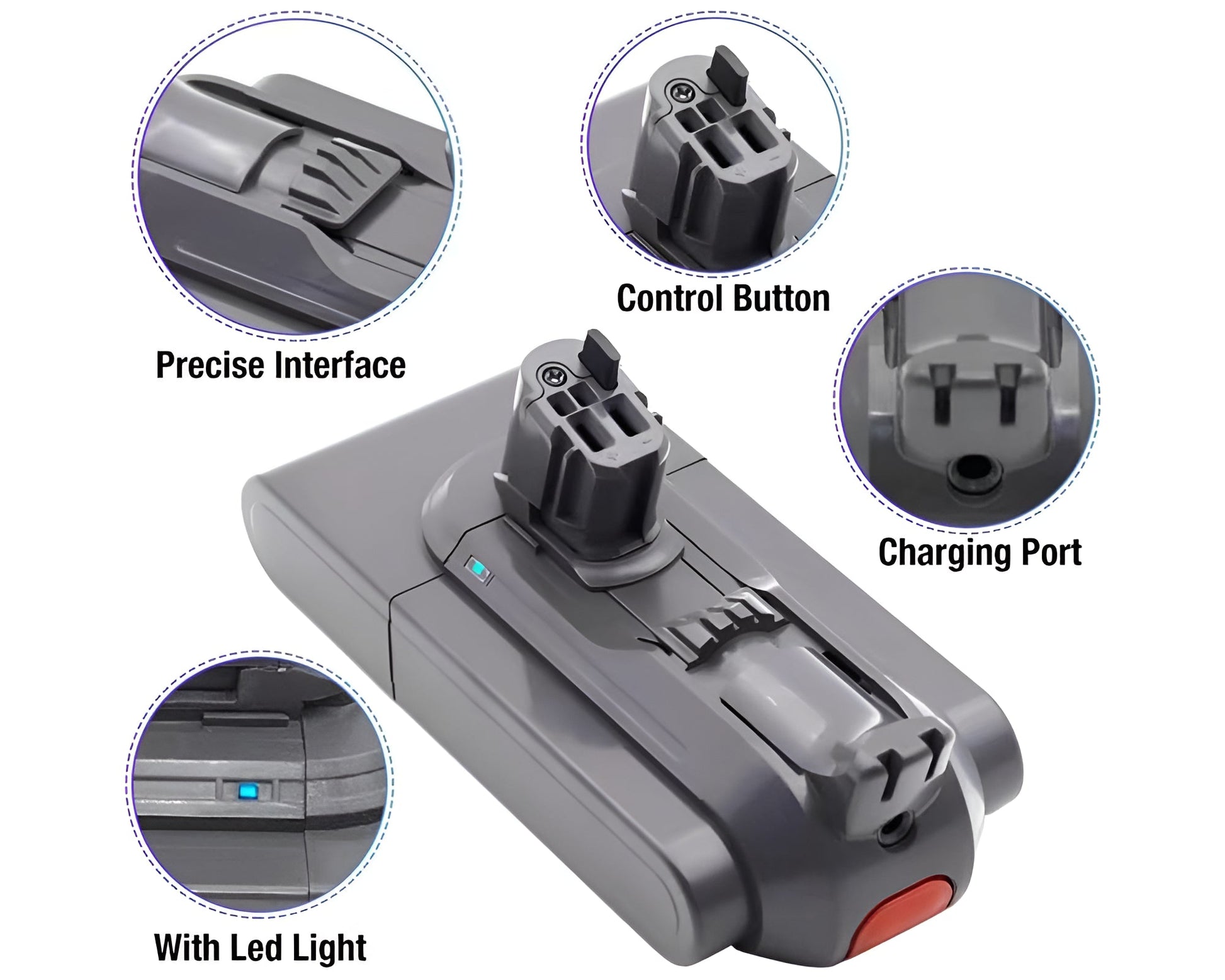 - LED Power Display: The integrated LED indicator lets you easily monitor your Dyson V11 replacement battery charge level.