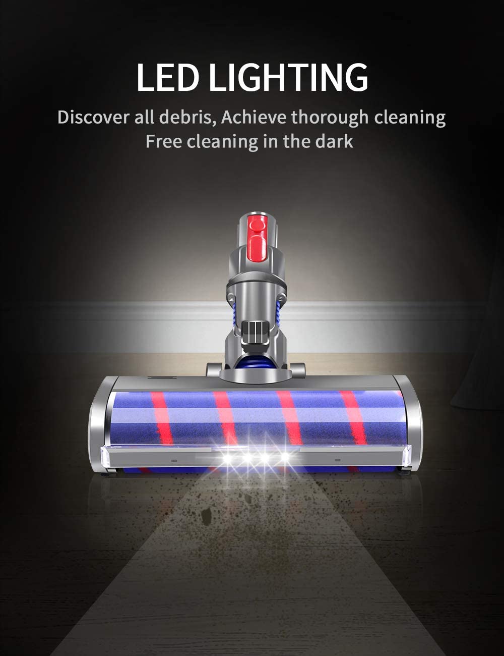 Our vacuum cleaner head part help to see dirt and debris clearly in the dark, offers high efficiency of vacuuming areas under the bed or sofa,keeping your home clean.