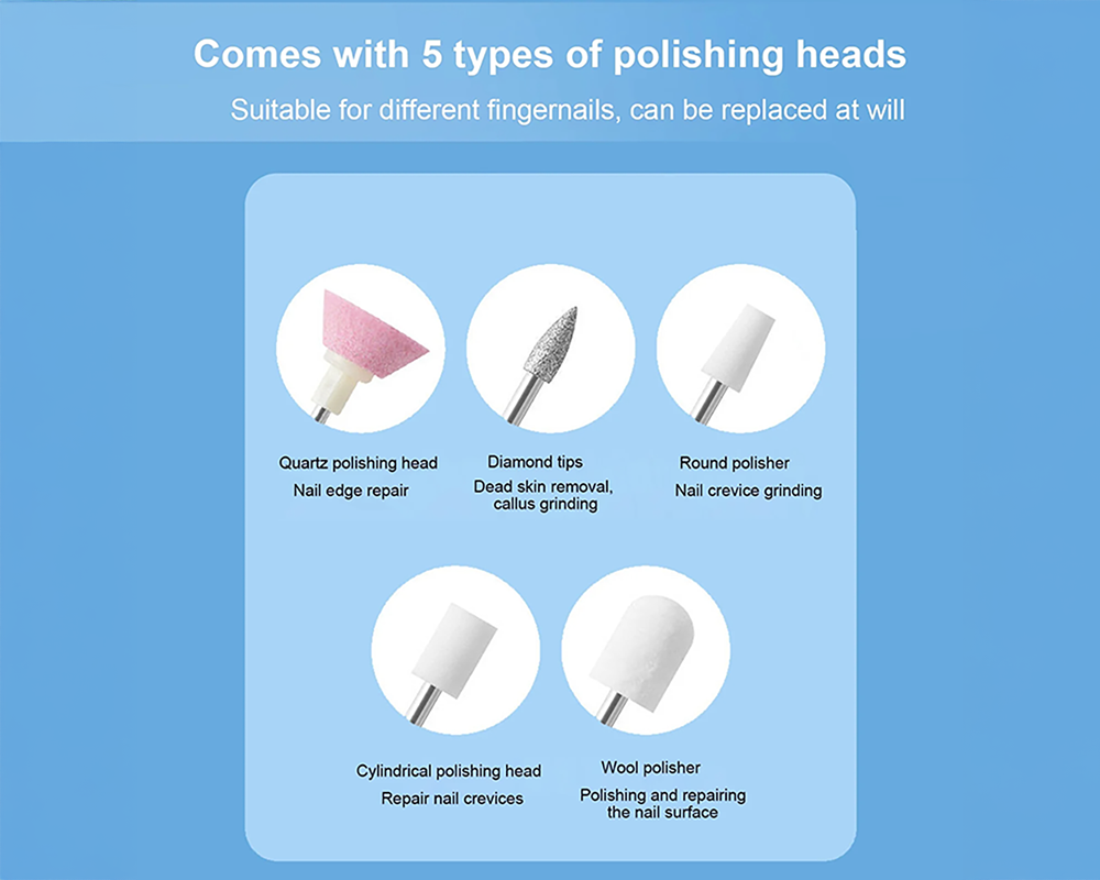 - Complete Kit: Includes 6 nail drill bits, a Type-C to USB charging cord, and a charging base for full functionality with this Cordless Nail File.
