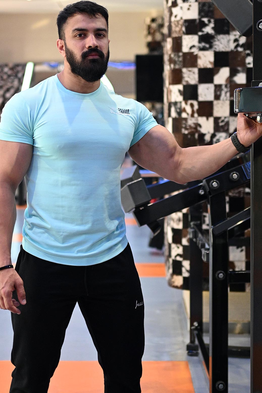Add a burst of color to your wardrobe with the Sky Blue Slim Fit Emblem T-shirt. This stylish t-shirt features a slim fit design, offering a sleek, body-hugging look that flatters your shape. With an average torso length, it provides a versatile, balanced fit that works well for both relaxed and active occasions. The crew cut sleeves give it a classic, timeless look, while the cool-to-the-touch fabric ensures you stay comfortable, no matter the weather. The distinctive emblem design adds a touch of uniqueness and sophistication to this otherwise casual piece. Whether you're hanging out or going for a laid-back outing, this sky blue t-shirt is a fresh, stylish option that stands out.