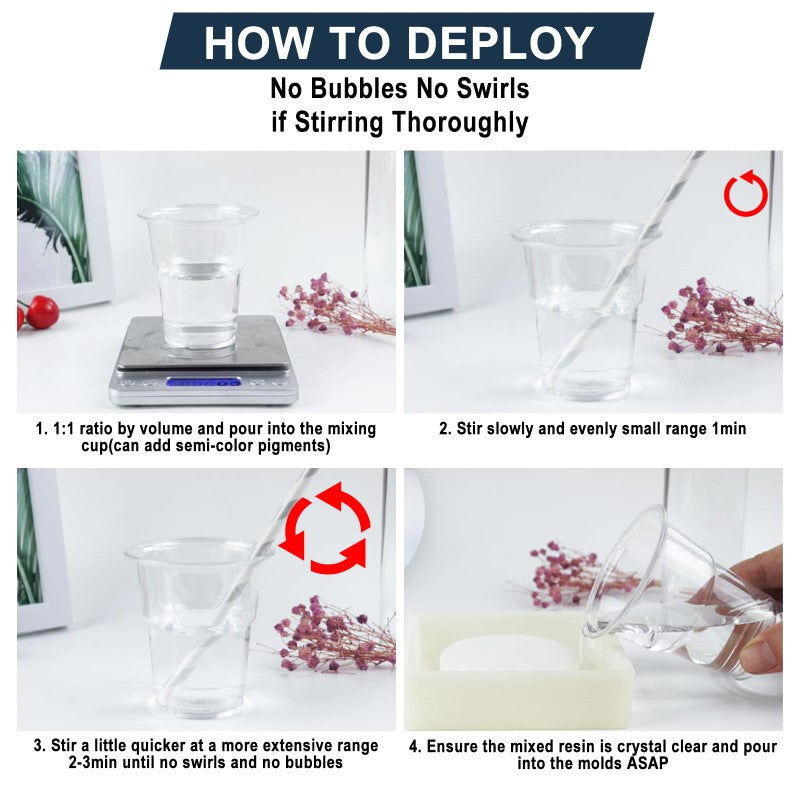 - Achieve a crystal-clear, high-gloss finish with this self-leveling resin. For best results for Epoxy Resin Kit mix the components for 3-4 minutes and pour into molds immediately.