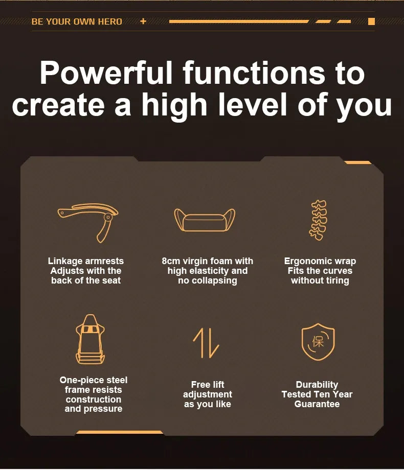 - This Gaming Chair features an ergonomic seat cushion made from molded foam and latex, providing sofa-like elasticity while evenly distributing pressure to reduce fatigue during long gaming or work sessions