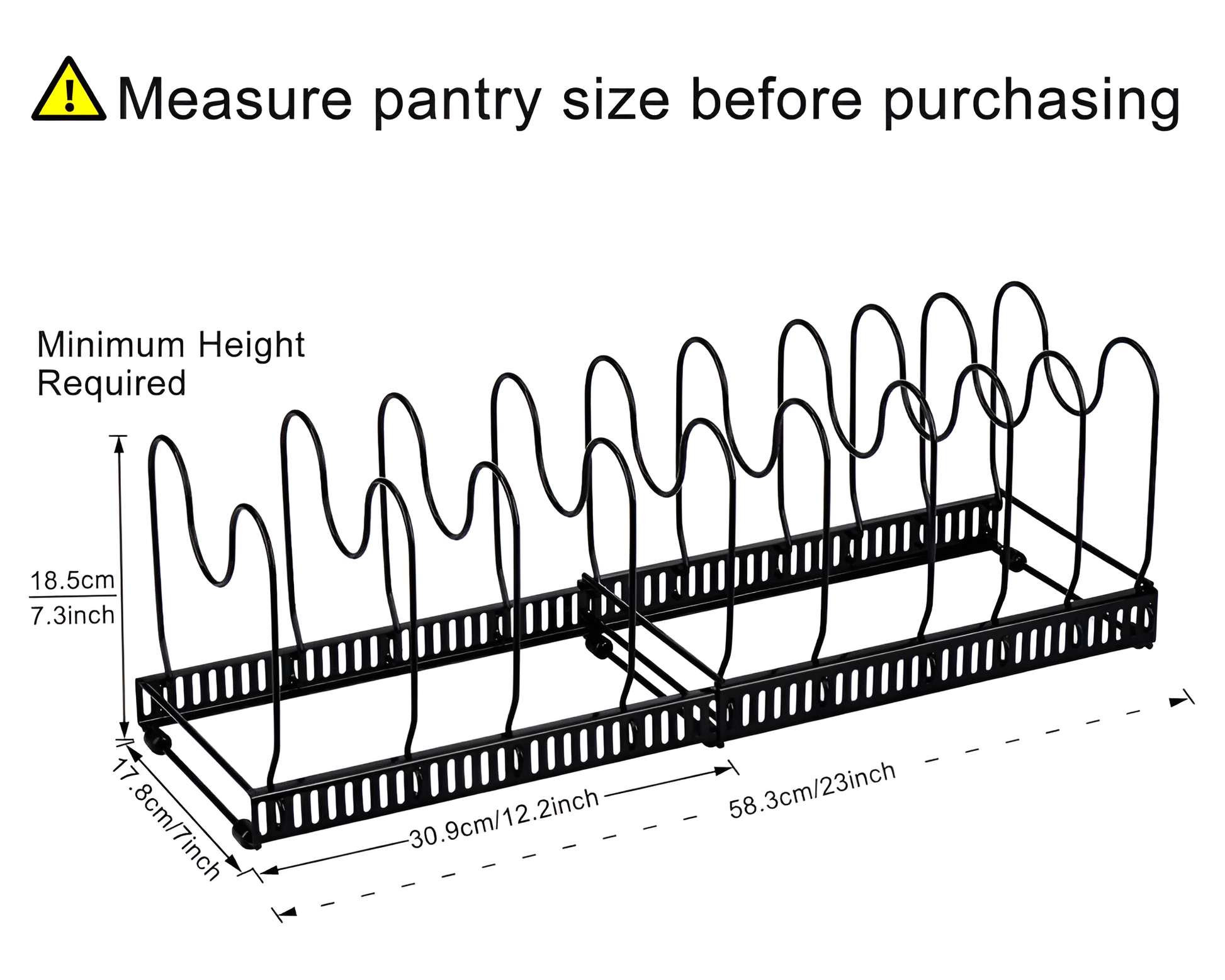 - 10 Adjustable Compartments: Dividers adjust in 1.5cm increments, allowing the Expandable Lid & Pan Organizer to hold up to 10 cooking essentials securely.