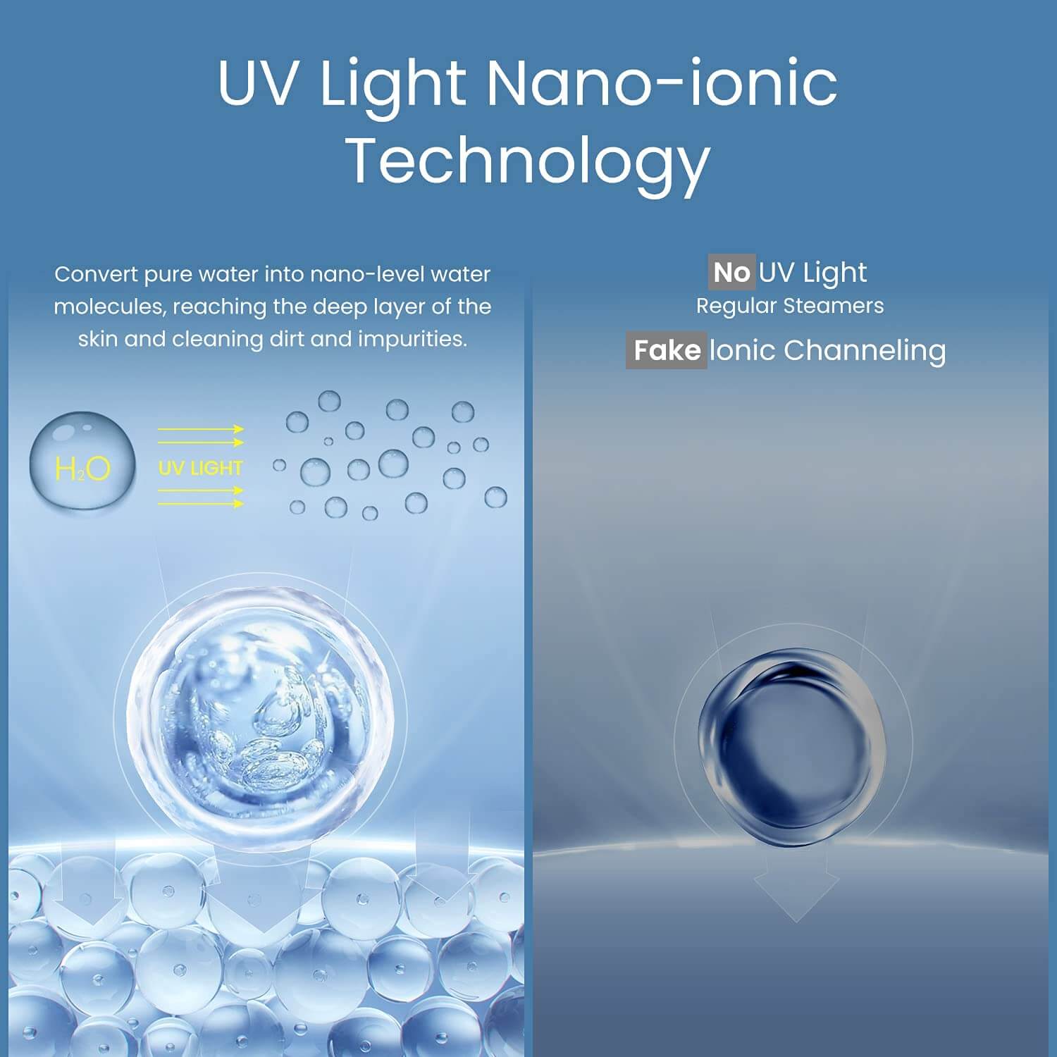 - Nano-Ionic Steam Technology: Equipped with a purify light that converts 100% pure water into nano-sized water molecules, delivering the purest steam for deep skin cleansing and hydration.