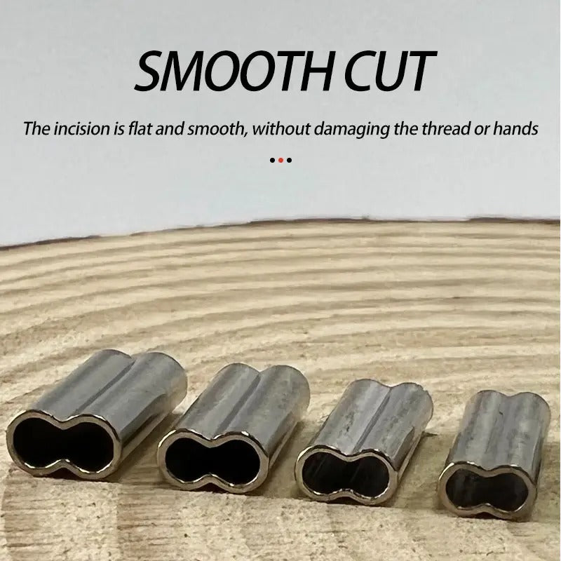 Sleeve cable connectors make it easy to secure loops when anchoring cables. They provide strong termination for wire rope assemblies. Use an appropriate swaging tool to crimp the connectors, and lock the ends of the guide wire using a vise, pliers, or other compression tools. The double barrel crimp sleeves are made of copper with zinc plating.eves are made of copper with zinc plating.eves are made of copper with zinc plating.eves are made of copper with zinc plating.