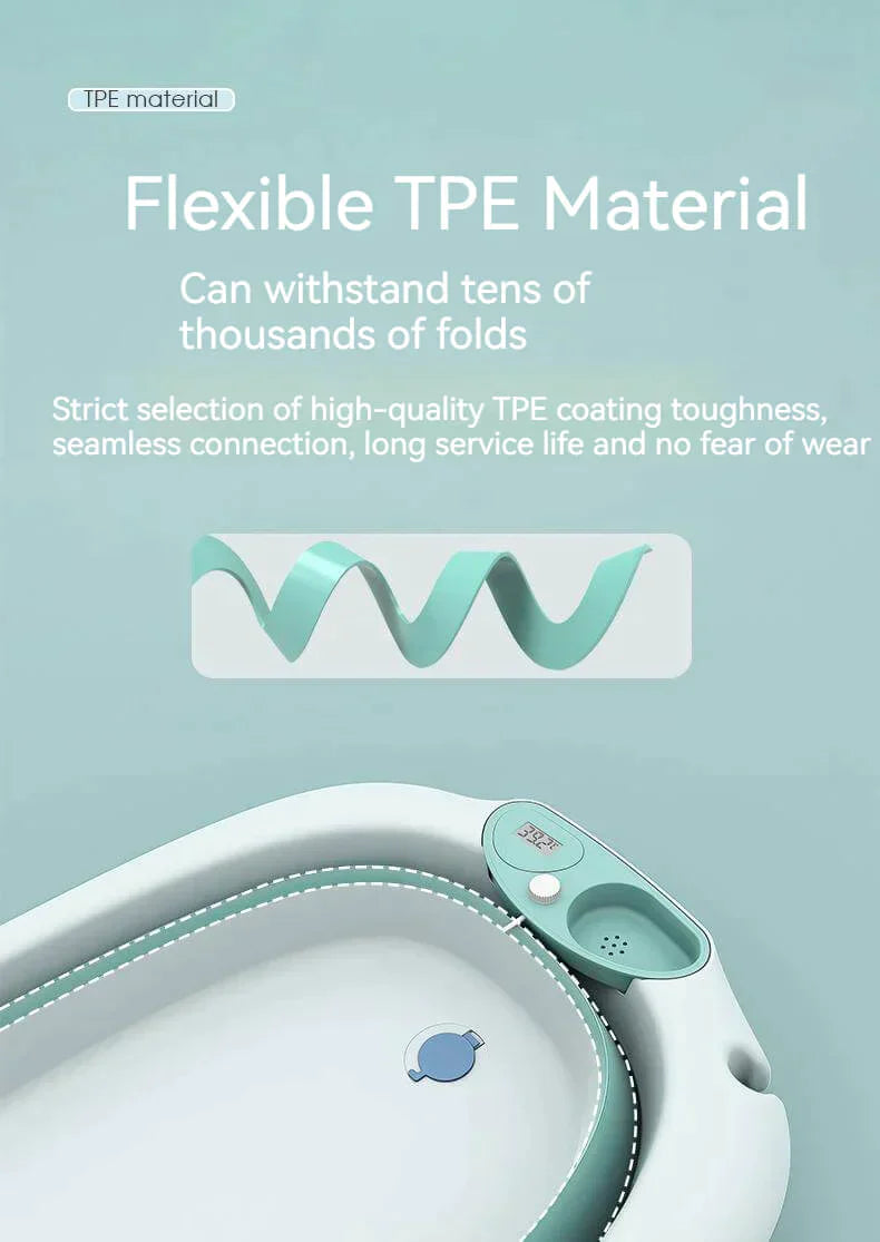 The baby tub's volume is 44L, it is can be used for newborns up to 6 years old. High-quality and flexible PP material tested by 10,000 times foldable experiments.
