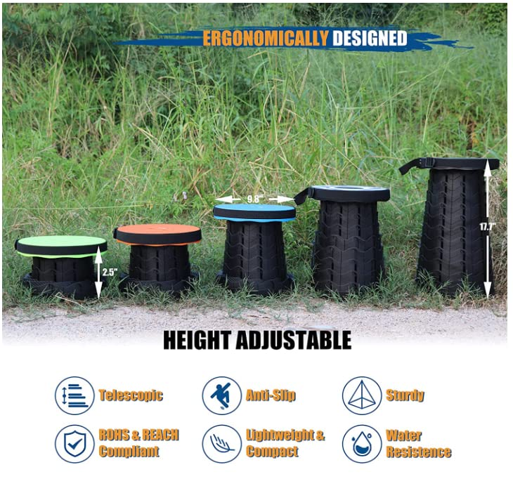 - Durable telescopic portable folding stool with non-slip base