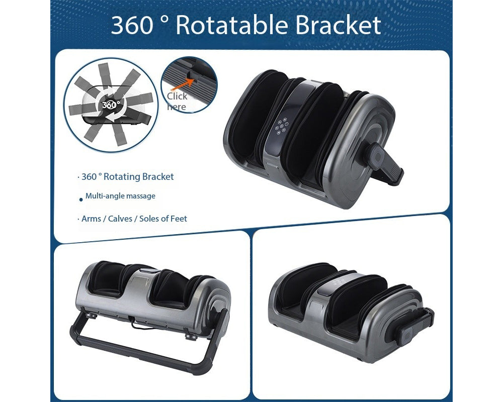 Experience the ultimate relaxation with the Calf & Foot Massager, designed to provide soothing relief to your feet, calves, and muscles. This advanced foot massager combines a variety of massage techniques including rolling, scraping, and shiatsu, along with heat and air compression. The result is a rejuvenating experience tailored to relieve tension, improve circulation, and enhance your overall well-being.