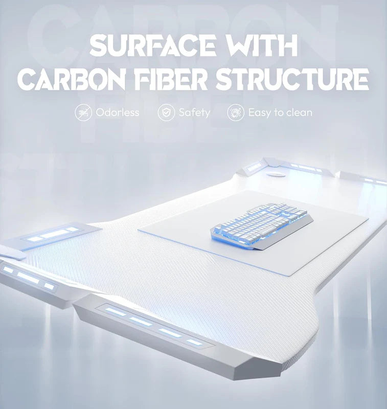 - RGB Lighting & Dual Speakers: Immerse yourself in sound and light with the RGB Gaming Desk and RGB Gaming Chair featuring synchronized RGB effects and integrated speakers.