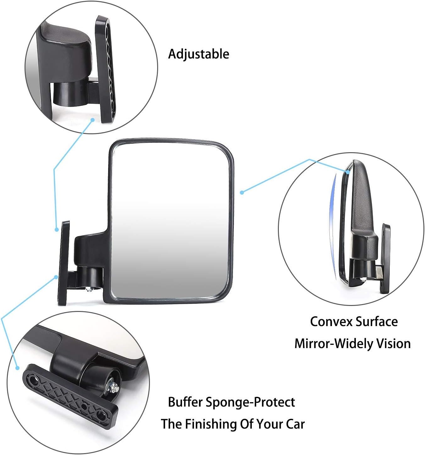 -Size 7.1*5.5 inch, A large golf cart side mirror set made for Yamaha, Club Car, EZ-GO most brand golf carts, A must for anyone driving their golf cart on the road