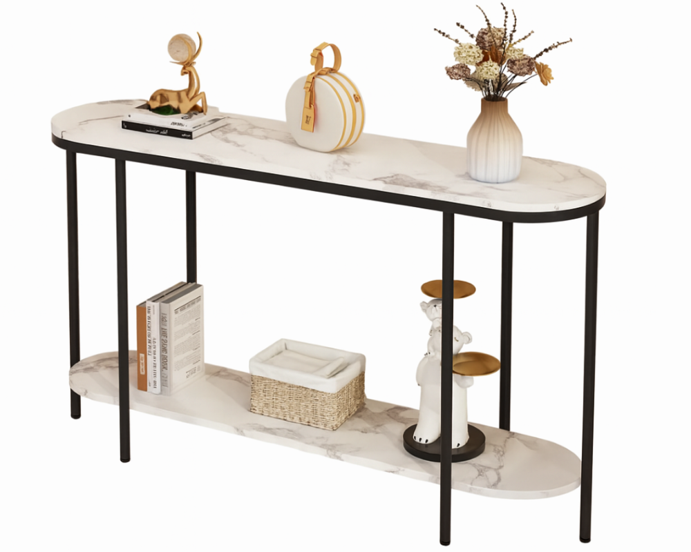 Bring elegance and practicality into your home with this Console Table, featuring a sleek faux marble top, black powder-coated steel frame, and extra storage shelf. Designed as a versatile Console Table for your hallway, foyer, living room, or entryway, it combines modern style with durability. Whether used as a Console Table for décor display, a sofa table for extra storage, or a hallway table to welcome guests, this piece is built to last.