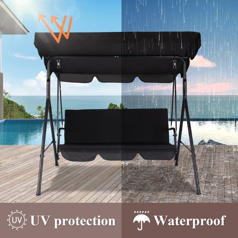 - Detachable Design: The roof and cushion of our outdoor canopy swing chair are made of polyester fabric. Both are detachable and can be replaced. The 3-seat swing is easy to clean, and you can use a garden hose to remove dirt and stains from the swing.
