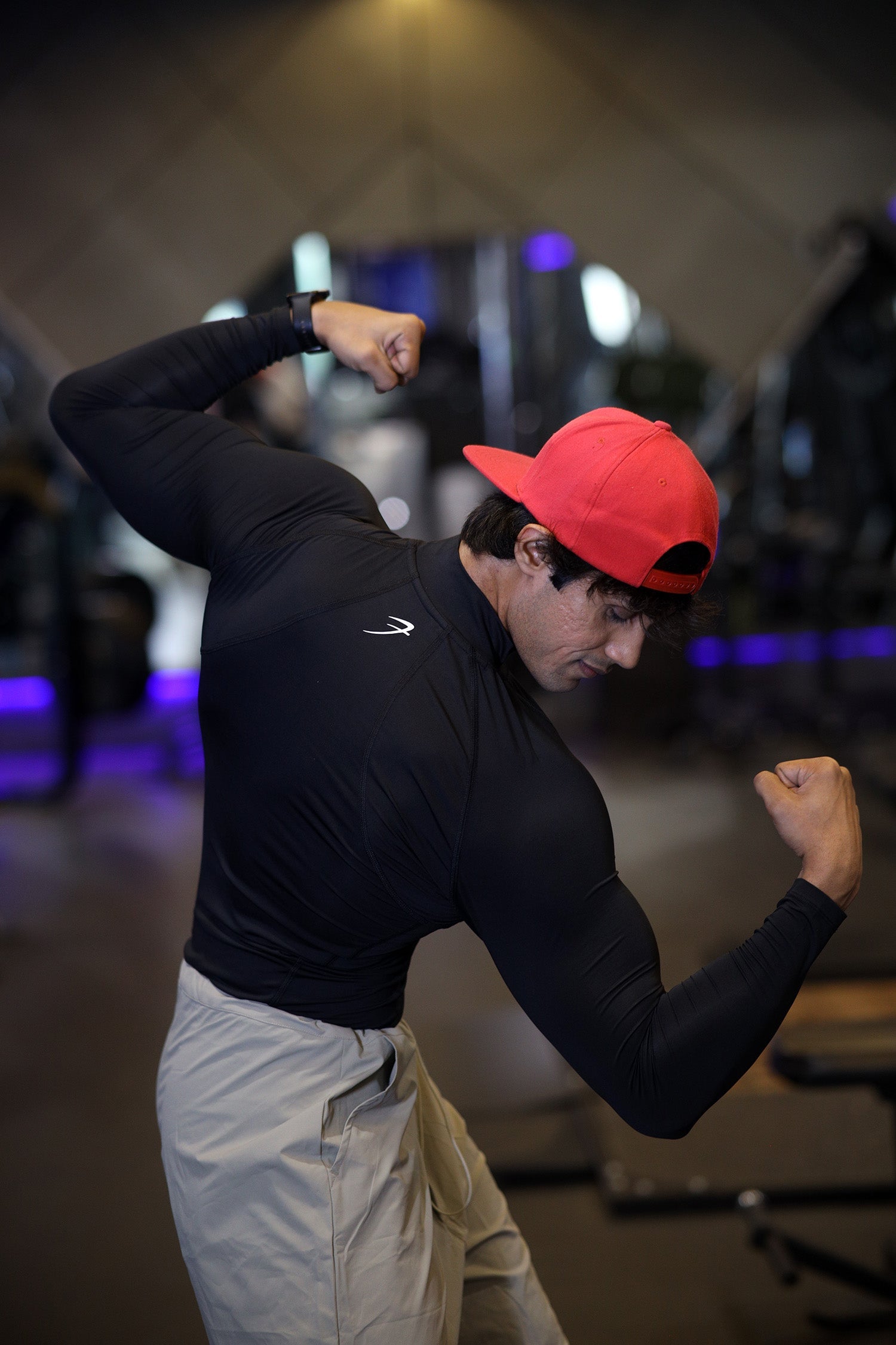 Introducing our High Neck Compression Full Sleeves T-Shirt in Black, the ultimate blend of style and performance for your active lifestyle. Crafted from a premium fabric mix of 90% breathable polyester and 10% spandex, this t-shirt is designed to provide a body-hugging fit that enhances your physique while ensuring ultimate comfort during workouts.