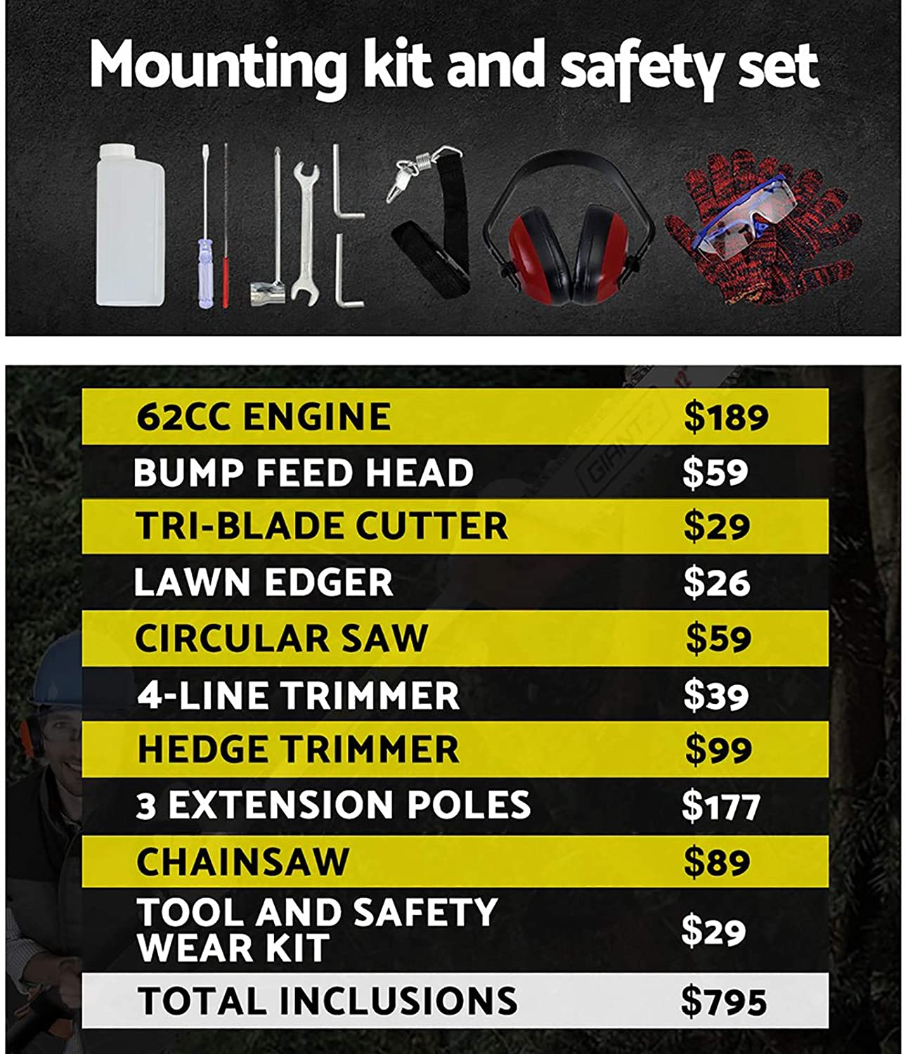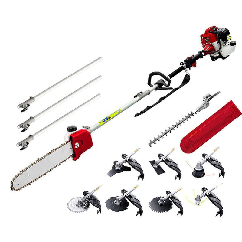 Comes with 7 different attachments, including a pole chainsaw, brush cutter, hedge trimmer, and whipper snipper, offering unmatched versatility for all your gardening needs. -
