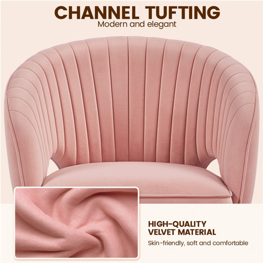 Our velvet desk chair is a great choice if you're looking for a small office chair that complements your home office decor. This piece will add a contemporary vibe to your space with its creamy velvet upholstery, chic barrel shape, and sleek chrome accents. A durable steady frame makes sure our customers enjoy a comfortable and relaxing sitting experience. The foam-padded seat and encompassing backrest give excellent body support while relieving muscle stress caused by long hours of working, applying makeup, or studying. Adjust the seat height to your personal preference and activate the rocking mode when you need a break from your workload. Plus, the PP castors provide 360° smooth mobility without scratching the floor. This elegant computer chair is an eye-pleasing addition to a range of spaces, including study rooms, home offices, bedrooms, dressing rooms, apartments, reception areas, meeting rooms, and more.