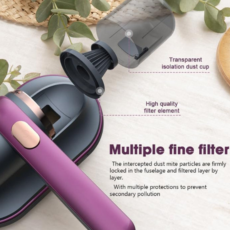Bed vacuum cleaner uv sanitizing has strong suction power and 68w motor. When the high-frequency vibration shakes the deep dust to the surface, the strong suction can suck it away in a second, effectively removing the deep dust.