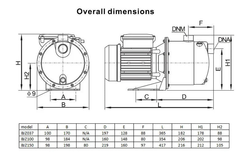 - Max Suction Lift: 9m