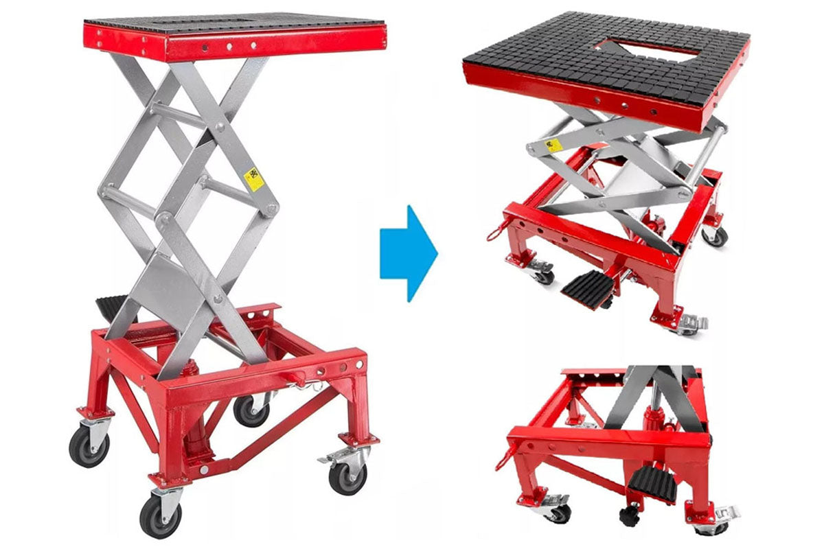 Made with high-quality steel, the atv jack is highly durable and can withstand heavy-lifting with every use. Lift up heavy motorbikes and atvs by hoisting them up with our premium atv lift table!
