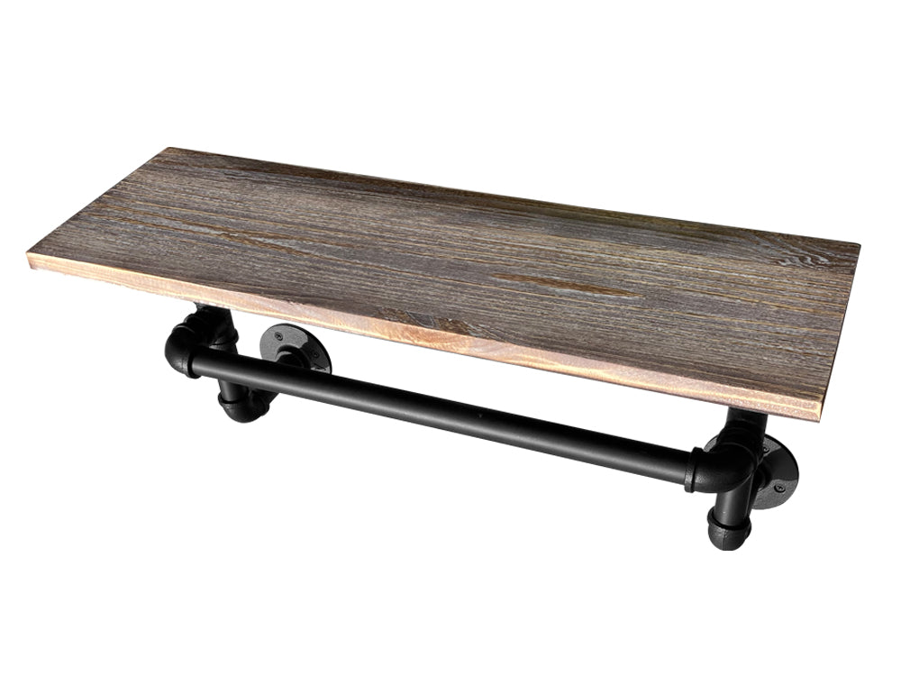 Crafted with high-quality materials, the sturdy and durable metal round tube pipe hanging shelf bracket is fixed on the wall to enhance stability and firmness. The tubing is all metal and has a rustic finish, while the solid wood shelf provides a good rustic look.