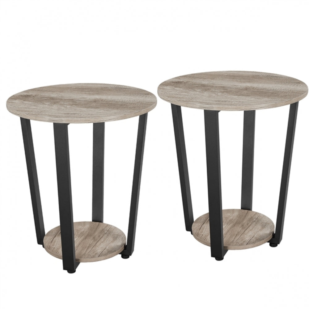 Industrial Side Table, Metal Side Table, Round Sofa Table with Storage Rack, Stable and Sturdy