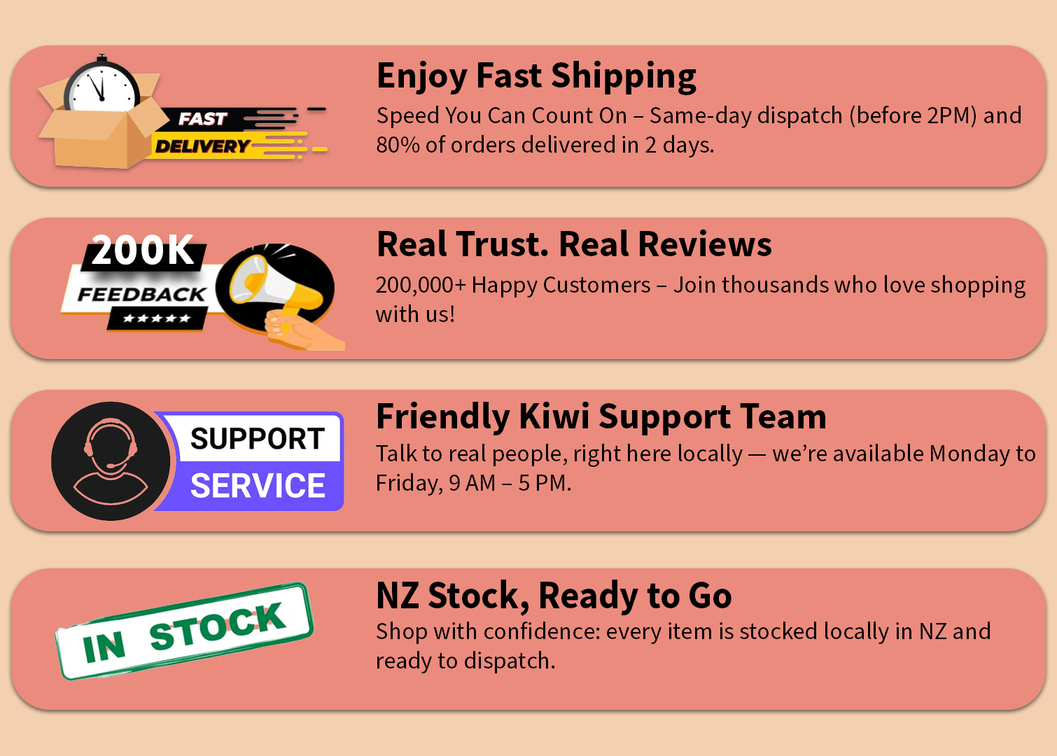 To ensure you have a great buying experience, we also offer a Buyer Guarantee, which is intended to align with your rights under the Consumer Guarantees Act 1993.