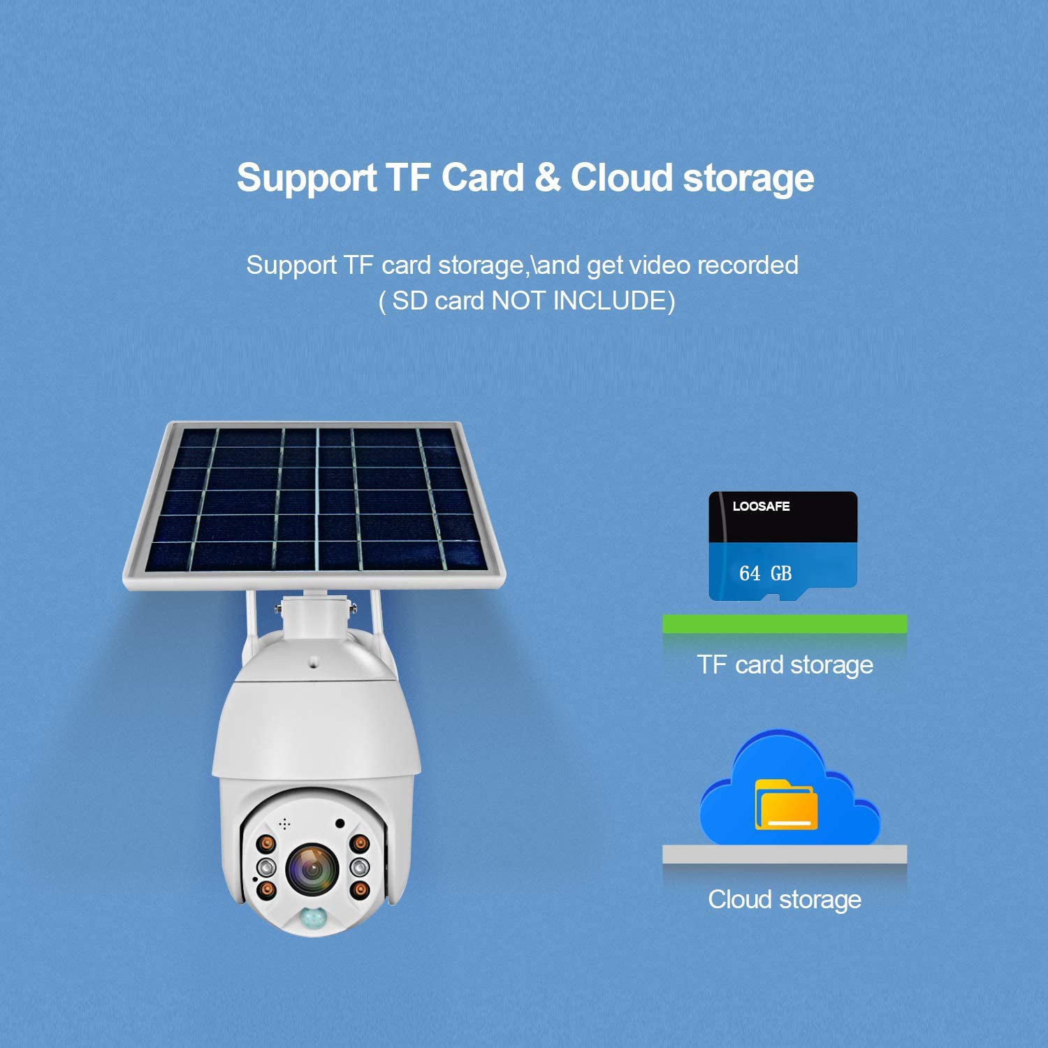 - Security Camera Environmental protection, Security Camera the solar panel is embedded above the camera, and there is no extra panel on the outside, which is green and energy-saving.
