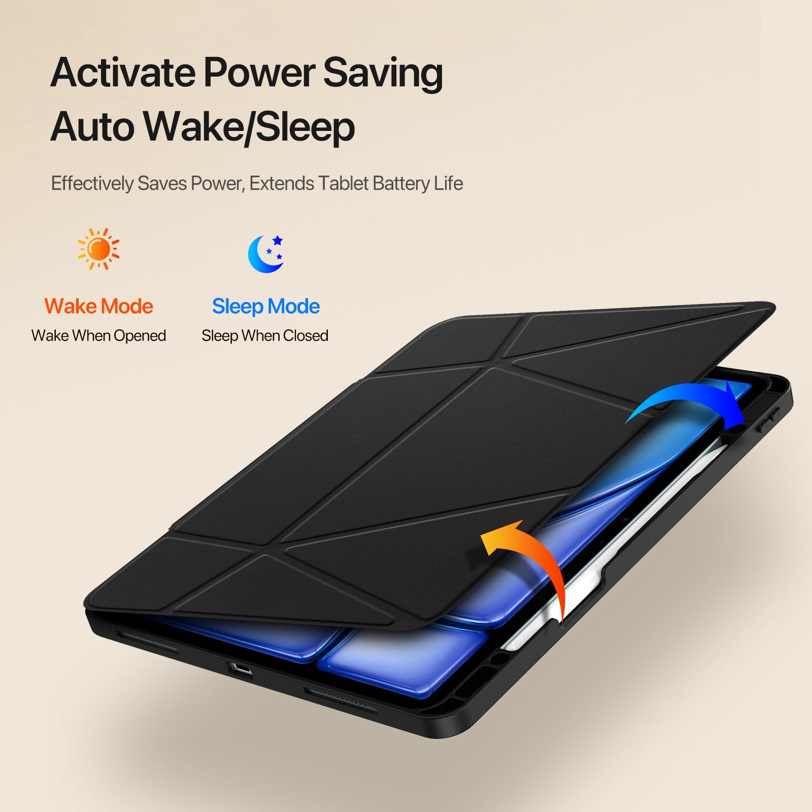 Smart Auto Sleep/Wake: Save battery life with the intelligent magnetic cover. It instantly wakes your iPad when opened and puts it to sleep when closed.
