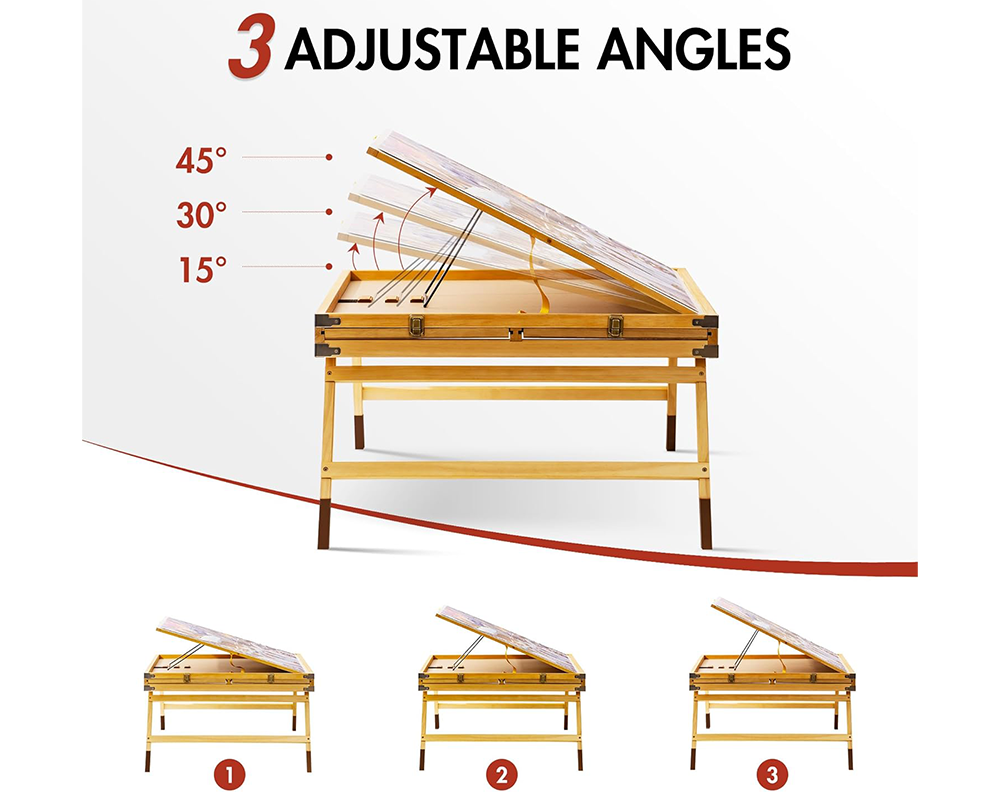 Adjustable 3-Angle Surface: The Jigsaw Puzzle Table tilts to three ergonomic positions, helping you enjoy clearer visibility and better posture while keeping the Jigsaw Puzzle Table firm and stable.