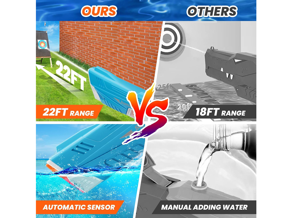 - Long-Range Performance: Shoot up to 30 feet with the Automatic Electric Water Toy and dominate every summer splash battle.
