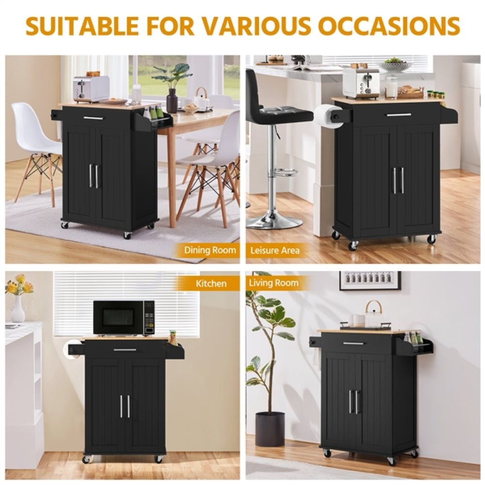 Do you want to keep your kitchen organized or keep your stuff neat and tidy? This kitchen island cart will be modern and fashionable furniture for any house. The cart is made of durable solid wood engineered wood, durable and sturdy. This kitchen island features a detachable towel rack, spice rack, one spacious drawer and enclosed cabinet space with one adjustable shelf to store your kitchen utensils. In addition, two of four wheels are lockable, which allows the cart to go and stop as you need, keeping the serving cart in one place or move it to anywhere you need for your convenience.