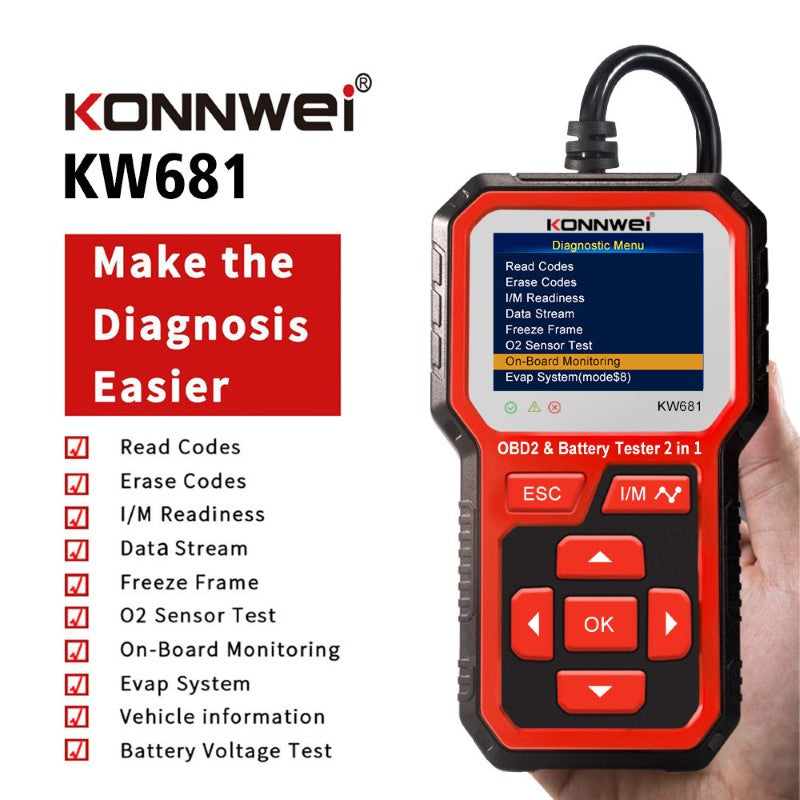KONNWEI KW681 OBD2 Scanner & Car Battery Tester OBD2 Scanner 6V 12V
