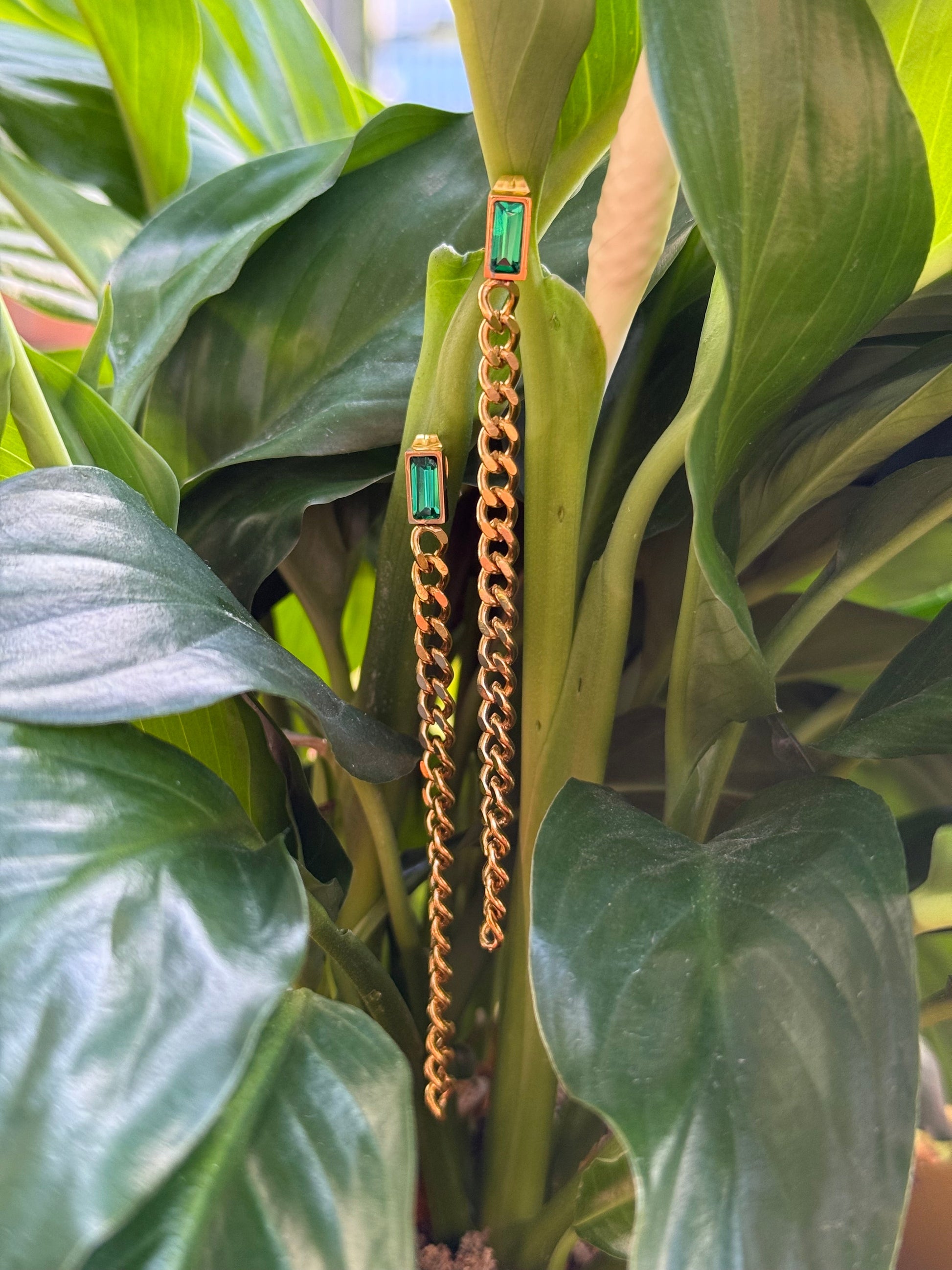 The Kōura Kākāriki earrings are a striking blend of elegance and vibrance. Featuring delicate gold chains adorned with radiant green diamonds, these earrings are designed to captivate with their bold yet refined beauty.