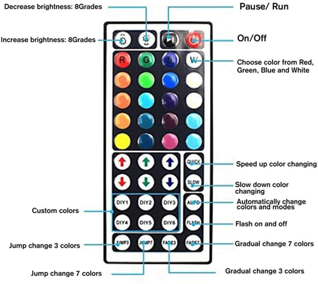 The color changing led strip lights provide the primary Red, Green, Blue (RGB) and white, and also 16 multicolored options. With 6 DIY color adjustable brightness, you can DIY your favorite color to decorate your room.