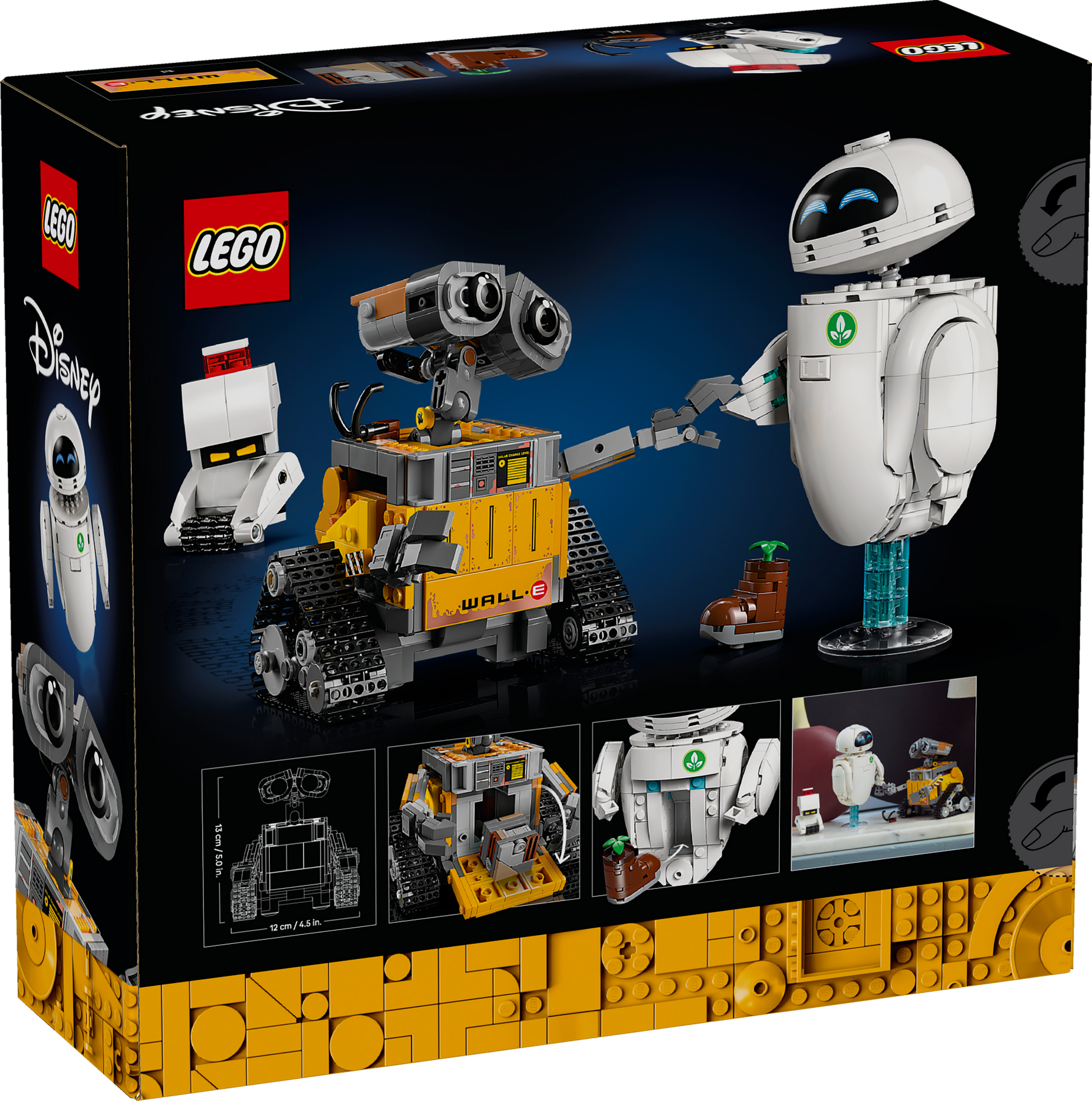 - Robot character dimensions – The Disney and Pixar WALL-E buildable model in this 811-piece LEGO® building kit for adults stands over 13 cm (5 in.) tall