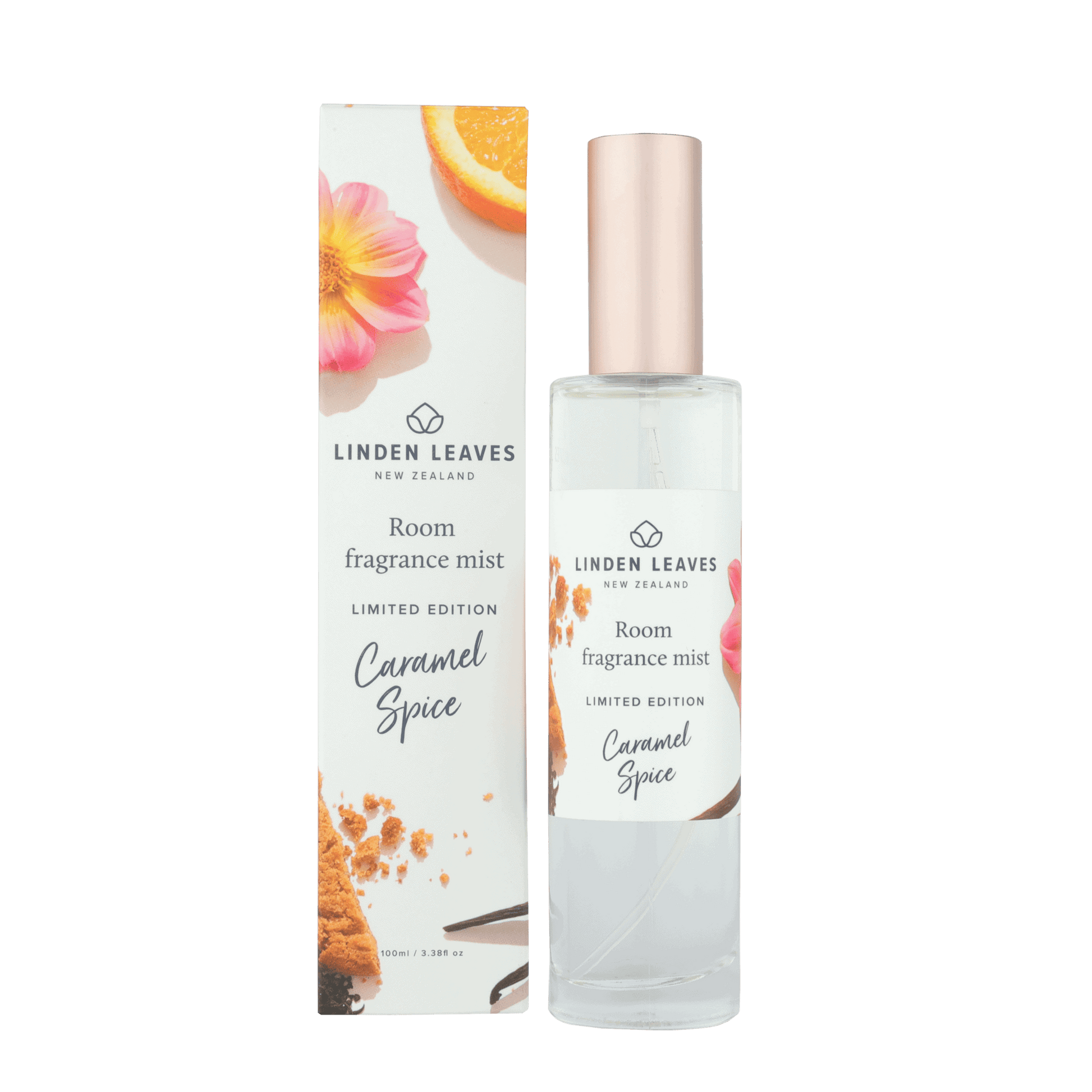 Instantly freshen your space with a quick spritz of Caramel Spice room fragrance mist. It'll have you and your guests salivating with it's dreamy festive scent. With top notes of pink pepper and orange, a spicy heart of black tea, ginger biscuit, cinnamon and cardamon, and a warm gooey base of musk, vanilla and caramel. Made with love in New Zealand.