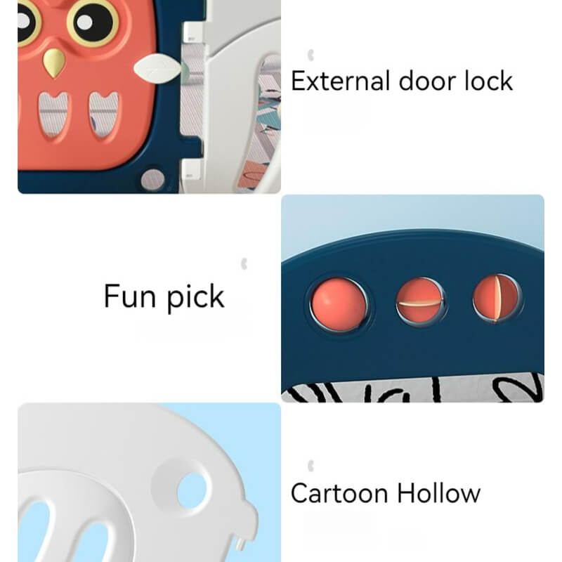 With a combination of 10 large and 6 small panels, this playpen provides ample space for your baby to explore, play, and grow. The vibrant blue bird theme adds a delightful touch, creating a playful and whimsical atmosphere for endless adventures. Each panel is meticulously crafted to ensure durability and stability, offering a secure and reliable environment for your precious bundle of joy.