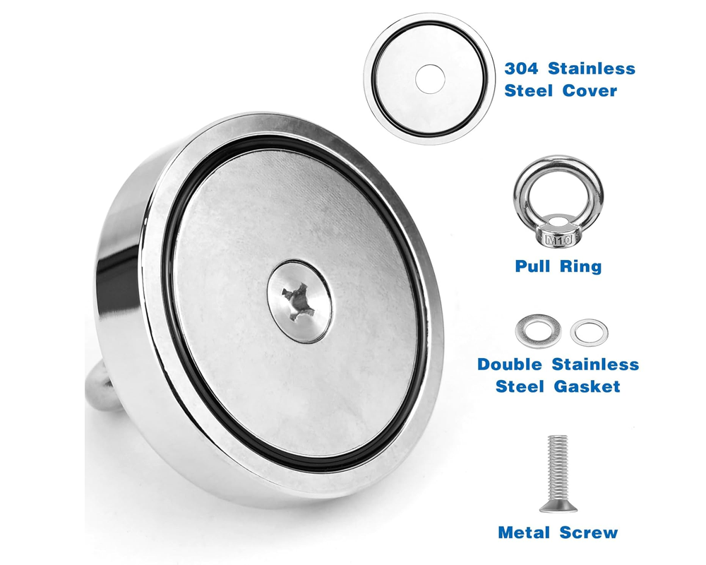- Super Powerful Magnet: N52 neodymium magnet with 453KG (1000 LB) pull force for effective treasure hunting and metal retrieval.