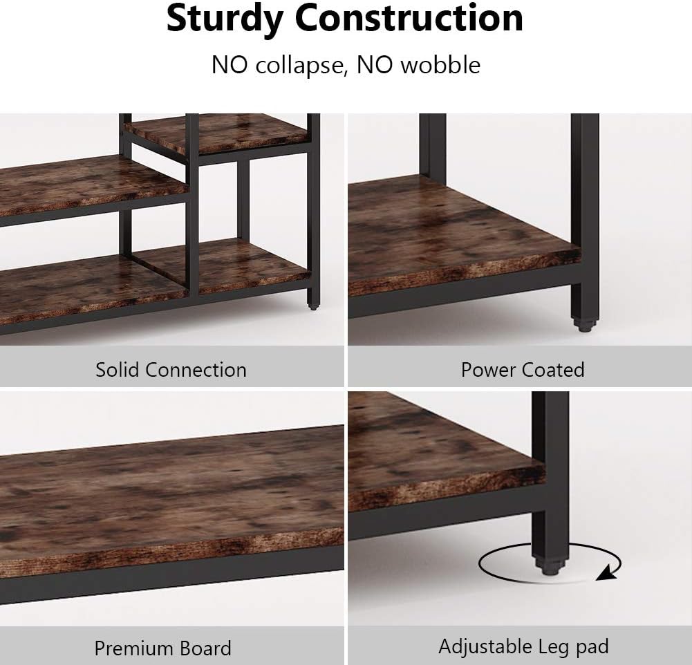 1.2M Free-standing Closet Organizer, Heavy Duty Clothes Closet, Portable Garment Rack with 6 Shelves and Hanging rod, Black Metal Frame and Rustic Board Finish