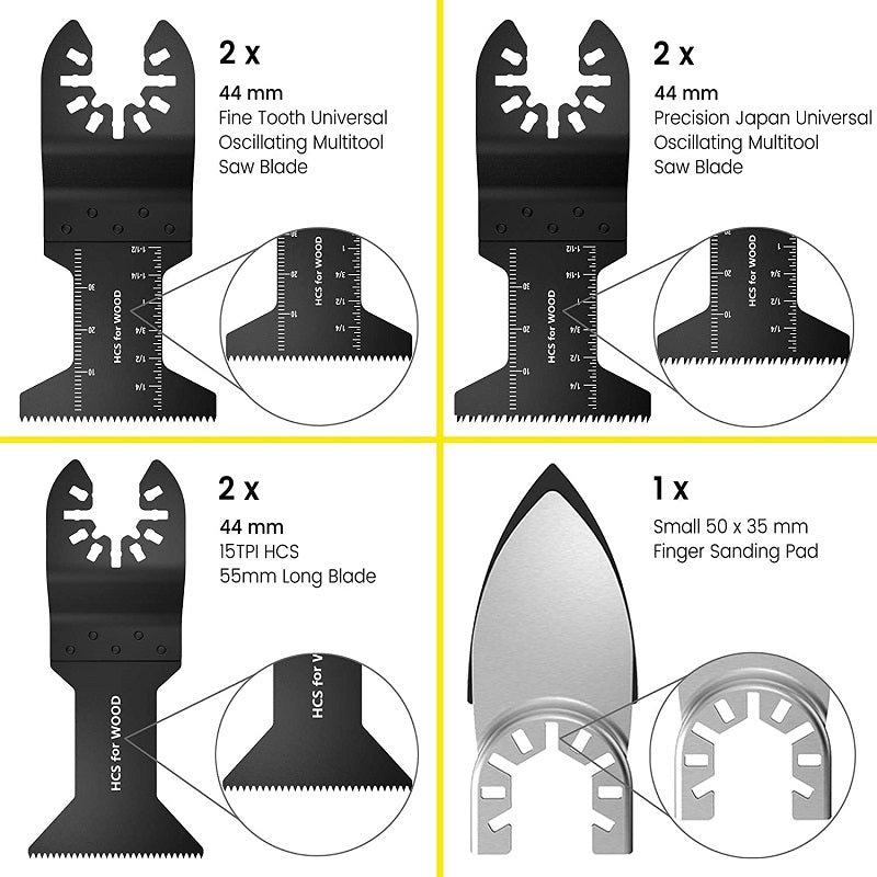 - Precision Saw Blades: Includes 2 types of precision blades with longer wavy teeth for faster, cleaner cuts in wood and plastic.