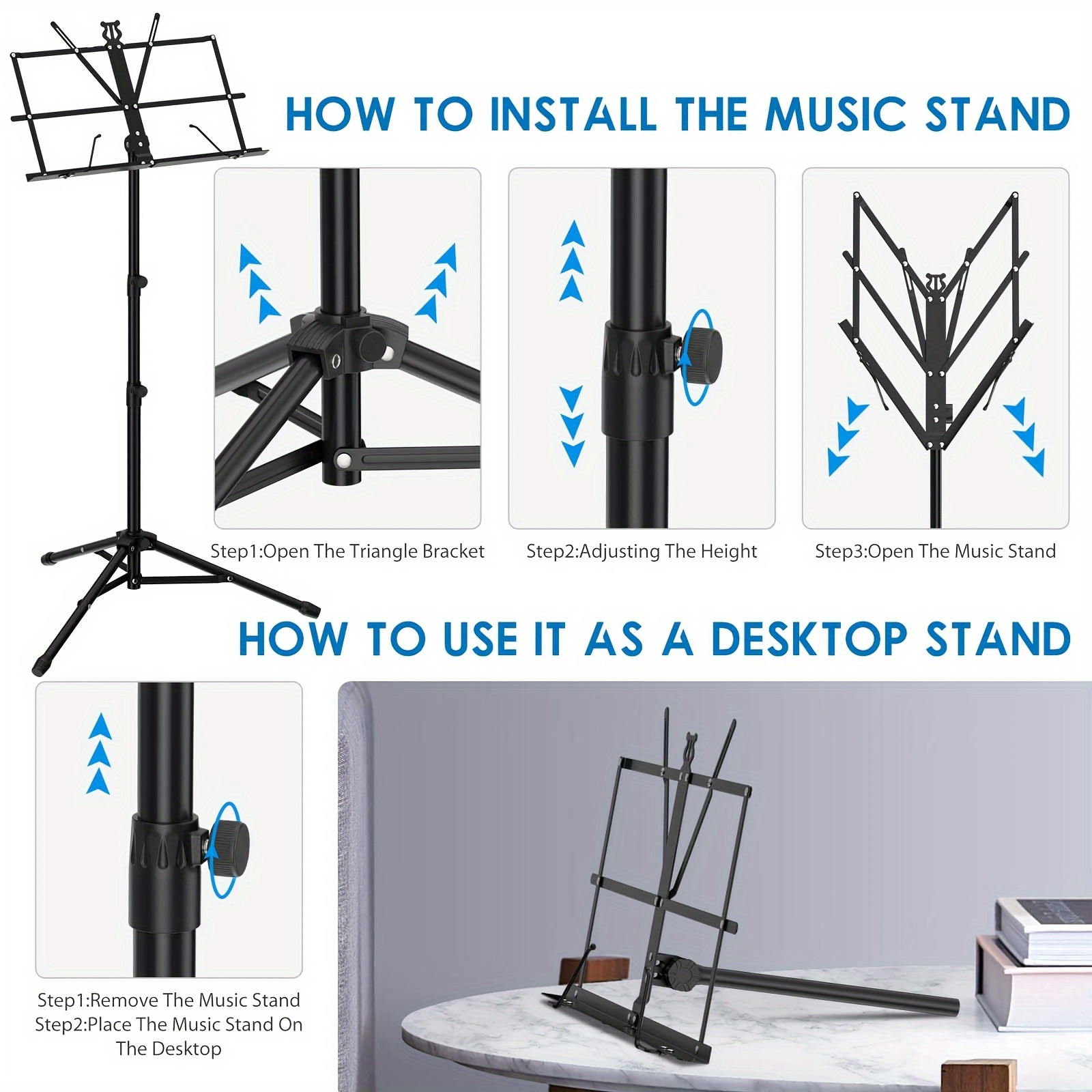 - Designed for musicians of all skill levels, this adjustable folding music stand meets diverse needs
