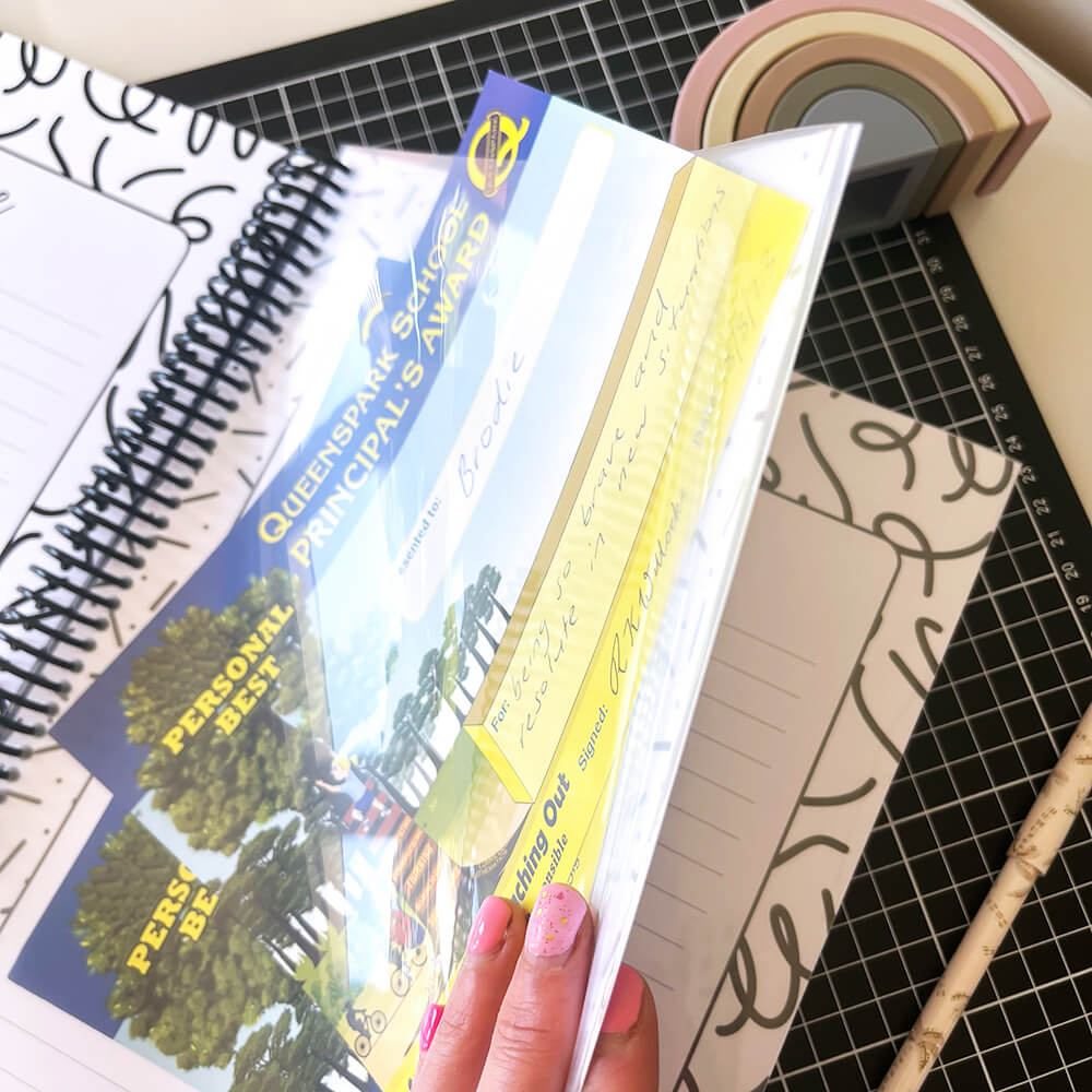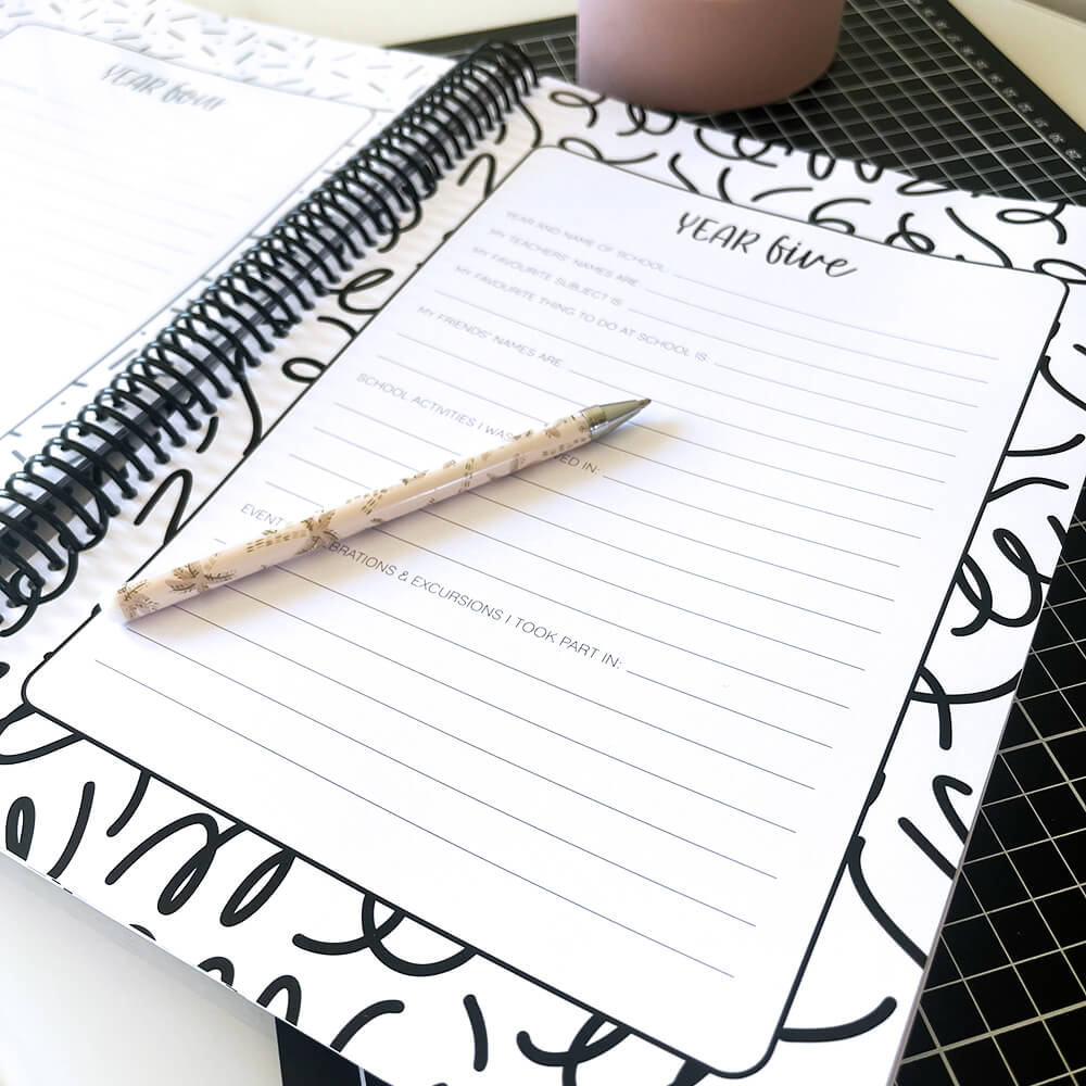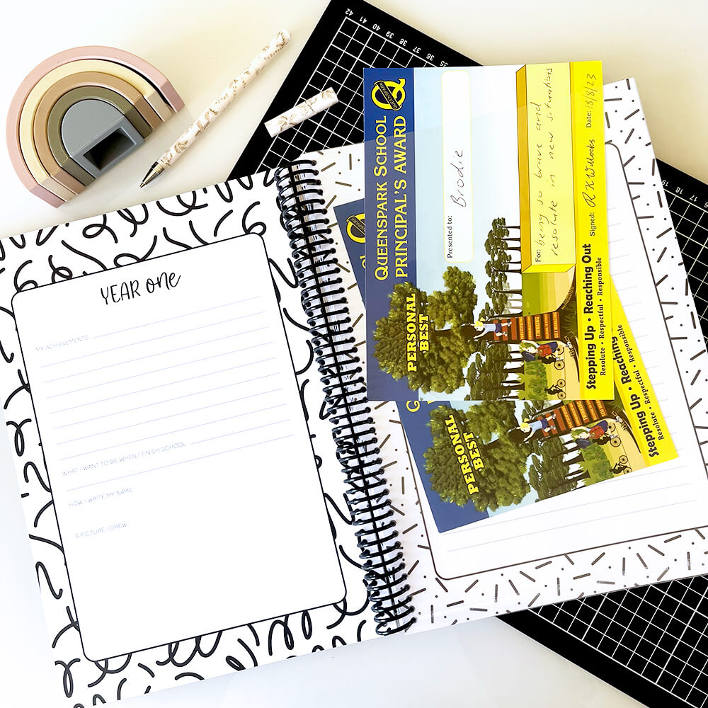 Our My School Days Record Books are also available with customised covers featuring your child’s name. Click here to see the personalised version.