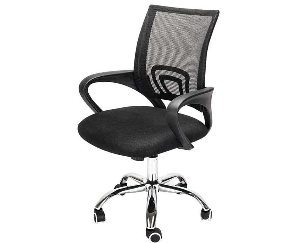 - Office Chair built with a sturdy metal frame and plastic armrests for durability and long-term use.